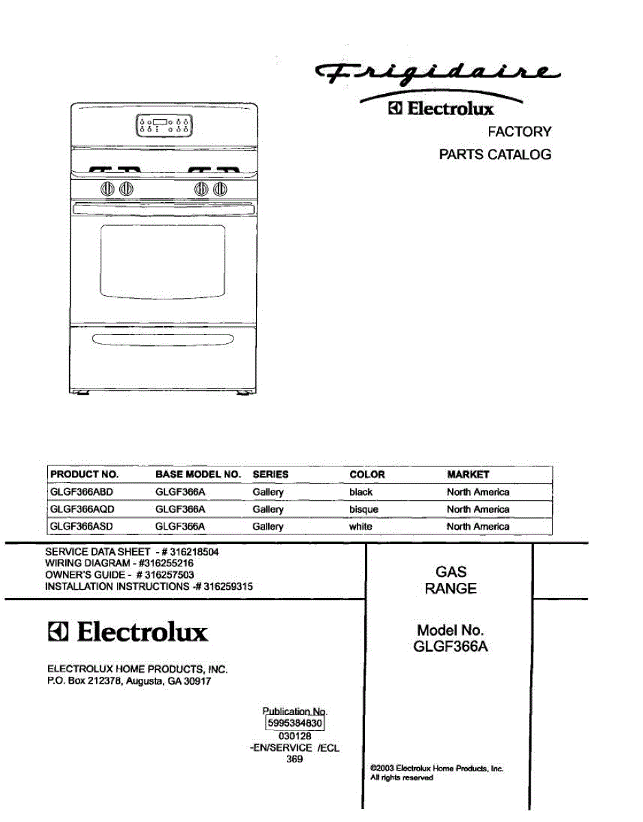 Parts for Frigidaire GLGF366ABD: 01 - Cover Parts