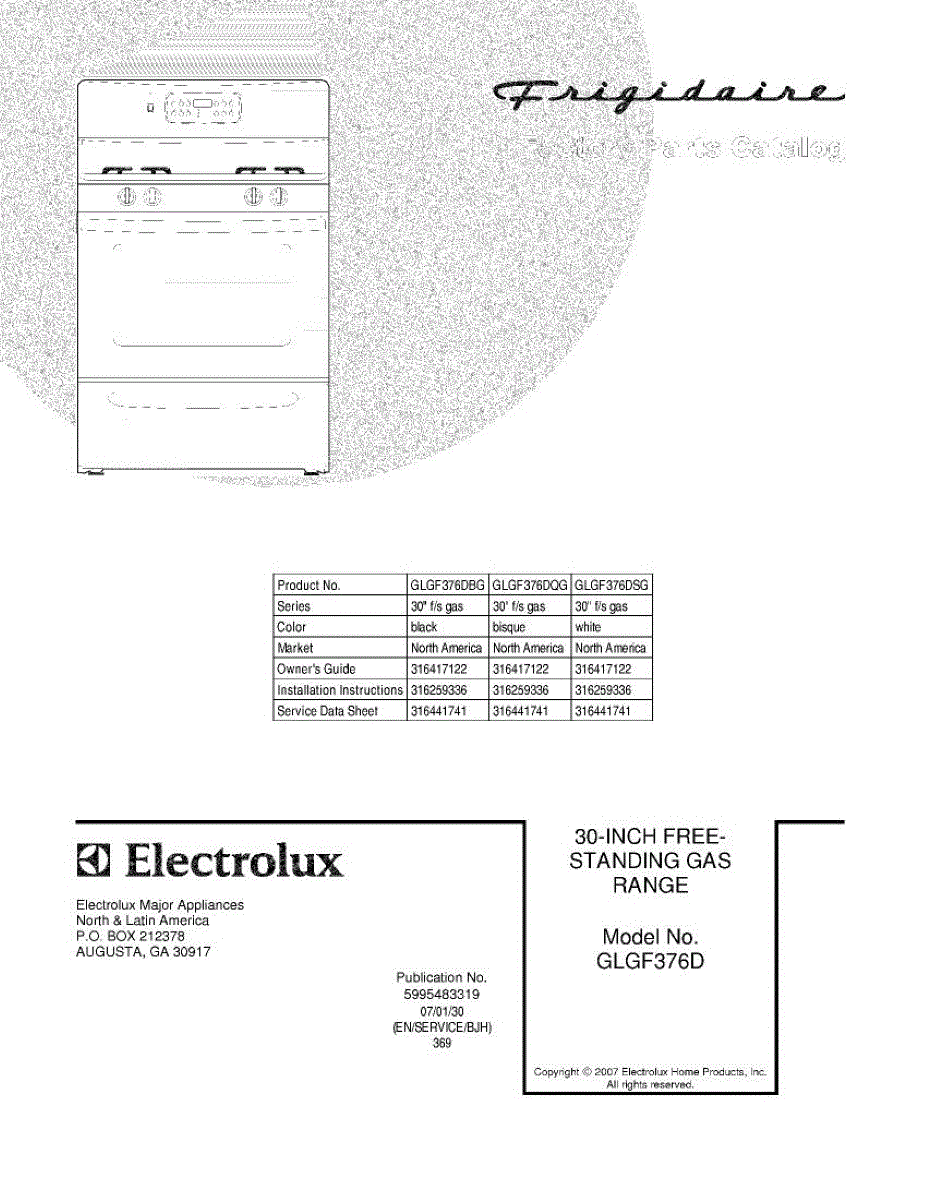 Parts for Frigidaire GLGF376DQG: 01 - Cover Parts