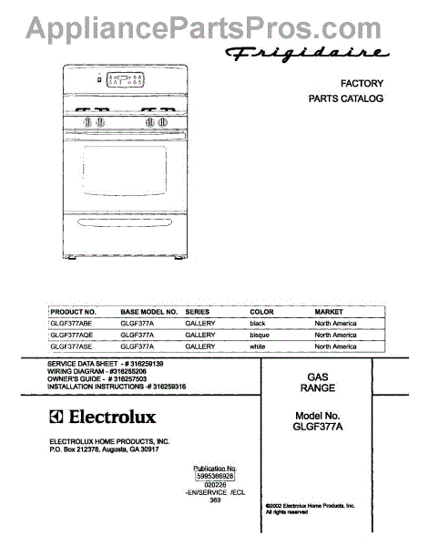 Parts for Frigidaire GLGF377AQE: 01 - Cover Parts