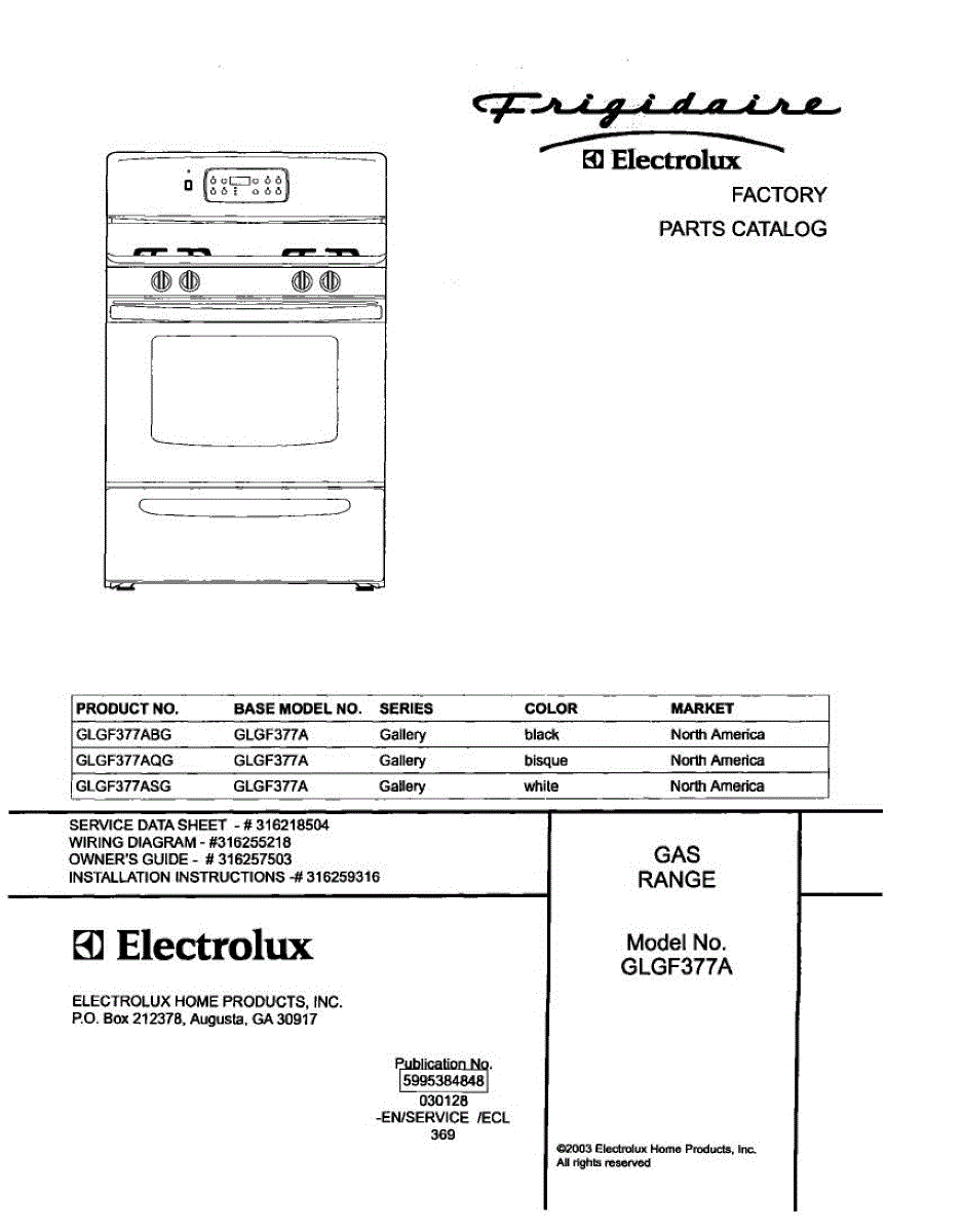 Parts for Frigidaire GLGF377AQG: 01 - Cover Parts