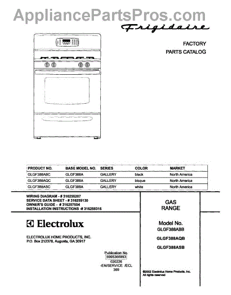 Parts for Frigidaire GLGF388AQC: 01 - Cover Parts