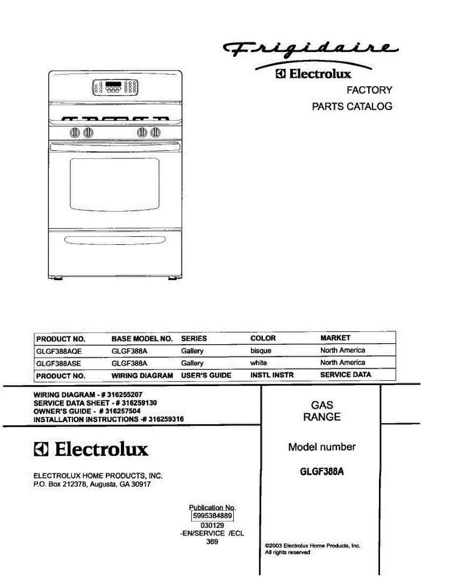 Parts for Frigidaire GLGF388ASE: 01 - Cover Parts