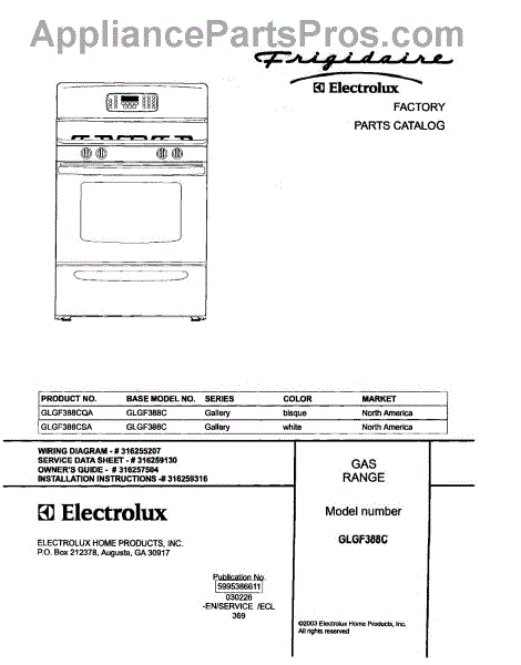 Parts for Frigidaire GLGF388CQA: 01 - Cover Parts