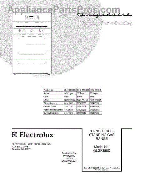 Parts for Frigidaire GLGF388DBC: 01 - Cover Parts