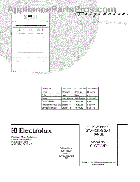 Parts for Frigidaire GLGF388DQG: 01 - Cover Parts