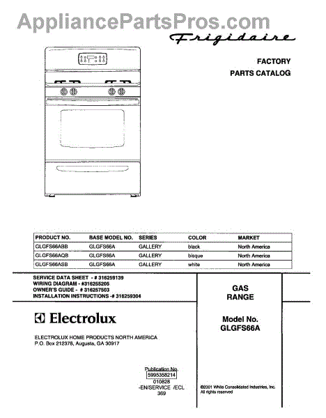 Parts for Frigidaire GLGFS66AQB: 01 - Cover Parts