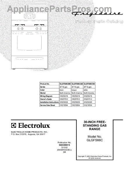 Parts for Frigidaire GLGFS66CQB: 01 - Cover Parts