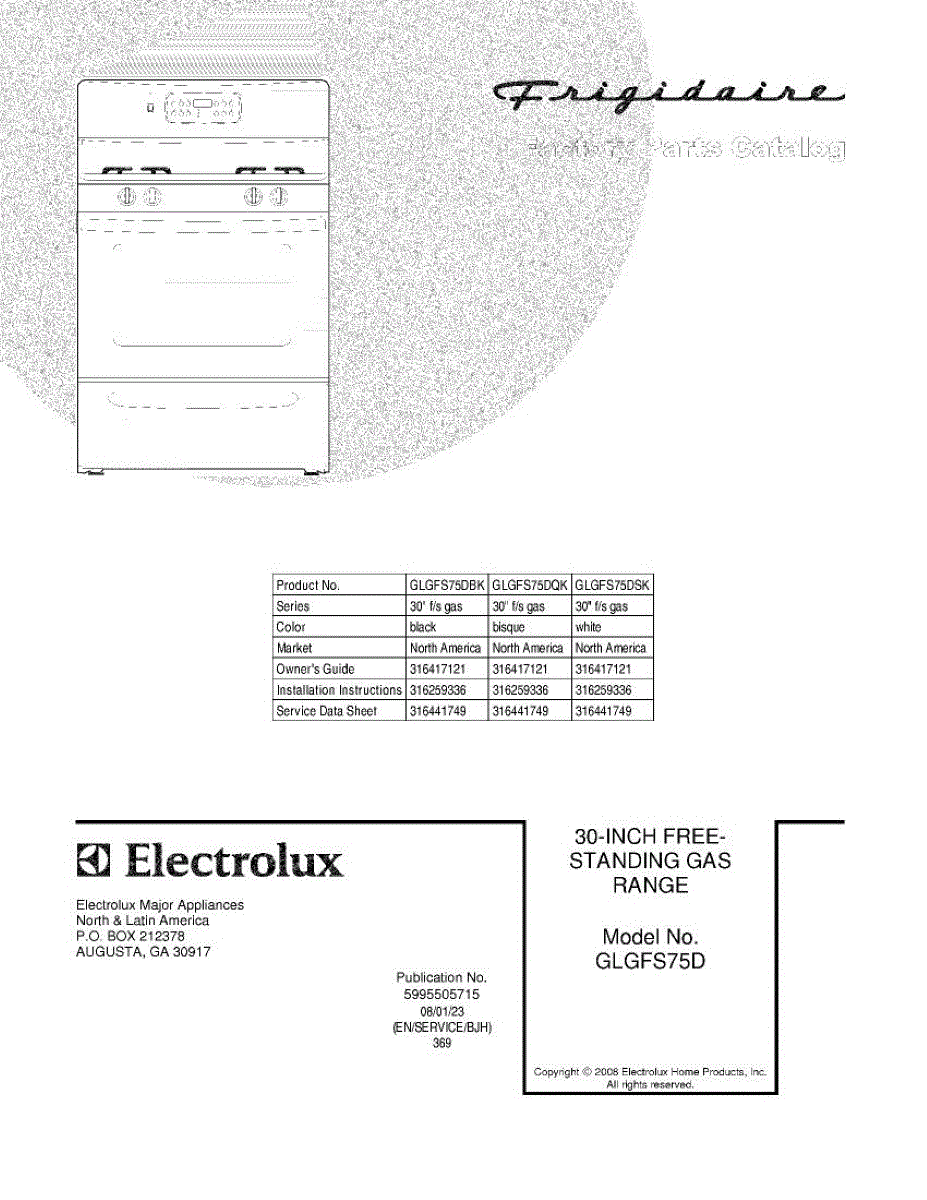 Parts for Frigidaire GLGFS75DQK: 01 - Cover Parts