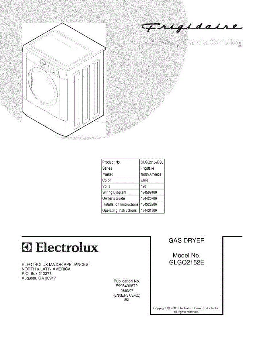 Parts for Frigidaire GLGQ2152ES0: 01 - Cover Parts