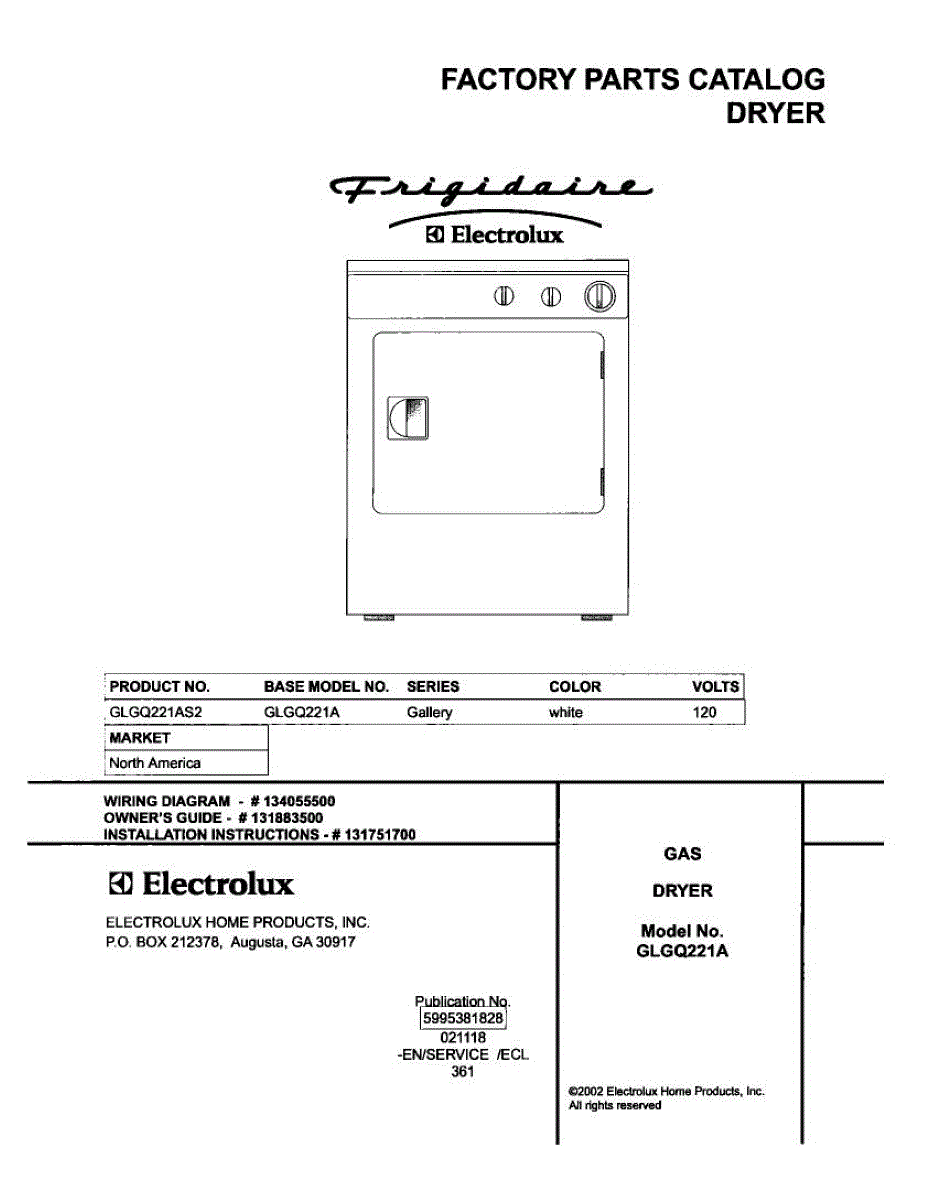 Parts for Frigidaire GLGQ221AS2: 01 - Cover Parts