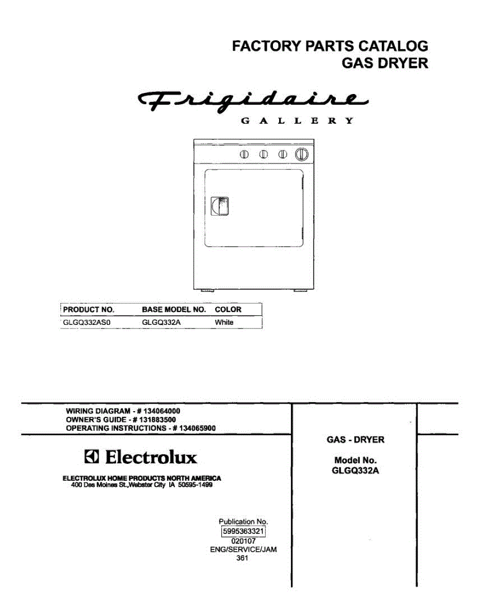Parts for Frigidaire GLGQ332AS0: 01 - Cover Parts