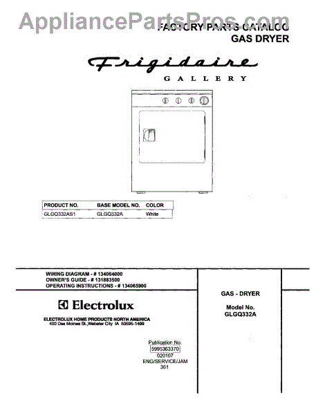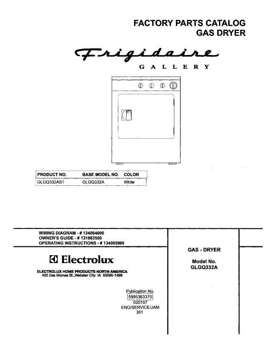 Parts for Frigidaire GLGQ332AS1: 01 - Cover Parts