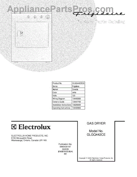 Frigidaire Canada/Gas Dryer