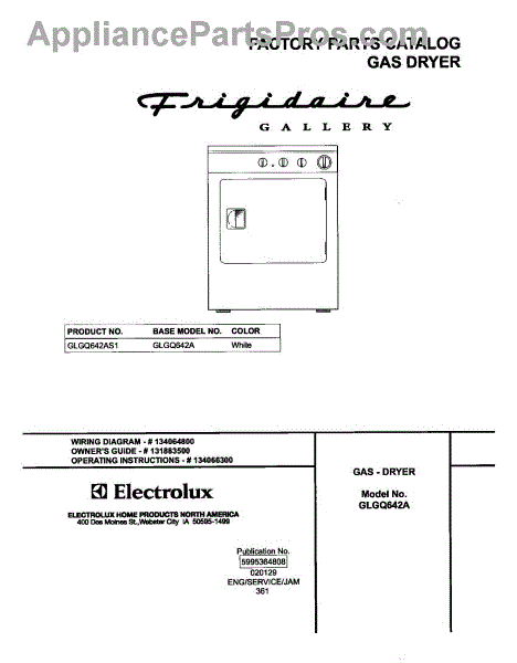 Parts for Frigidaire GLGQ642AS1: 01 - Cover Parts