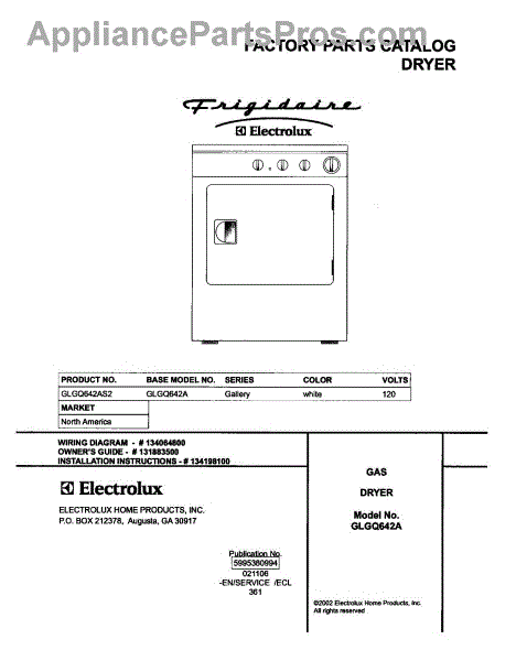Parts for Frigidaire GLGQ642AS2: 01 - Cover Parts