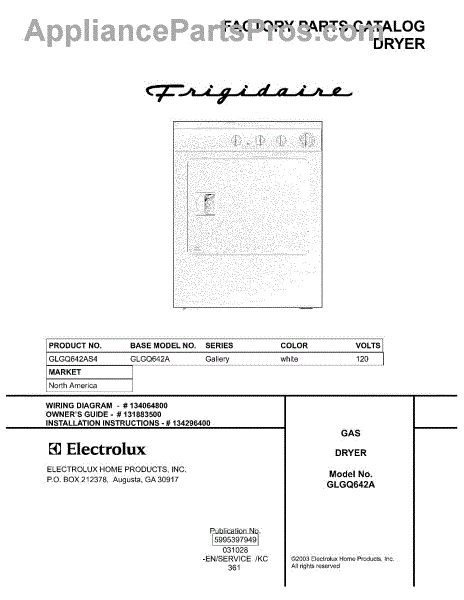 Parts for Frigidaire GLGQ642AS4: 01 - Cover Parts