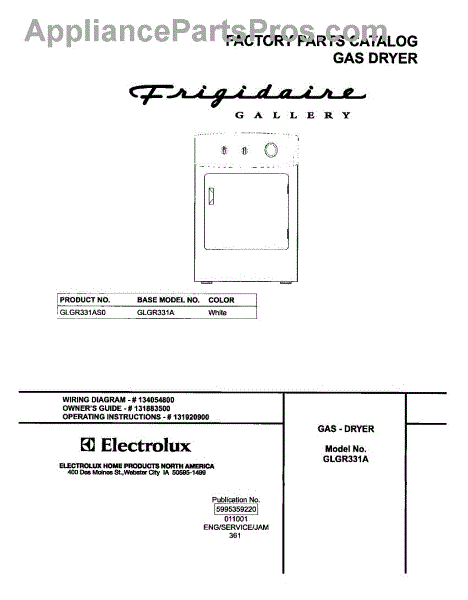 Parts for Frigidaire GLGR331AS0: 01 - Cover Parts