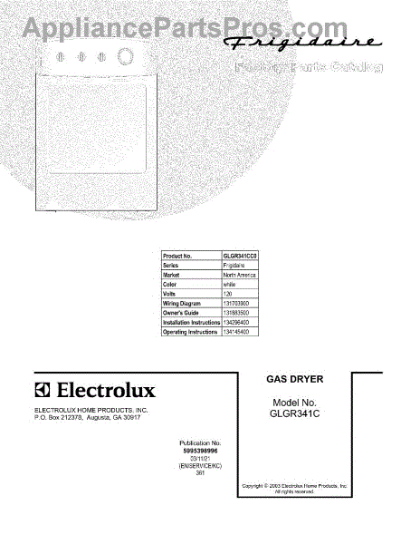 Parts for Frigidaire GLGR341CC0: 01 - Cover Parts