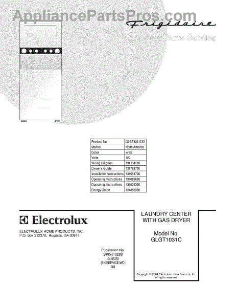 Parts for Frigidaire GLGT1031CS1: 01 - Cover Parts