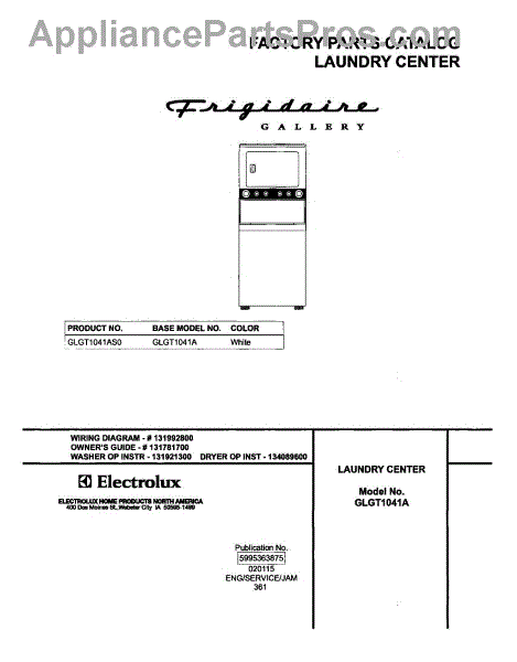Parts for Frigidaire GLGT1041AS0: 01 - Cover Parts