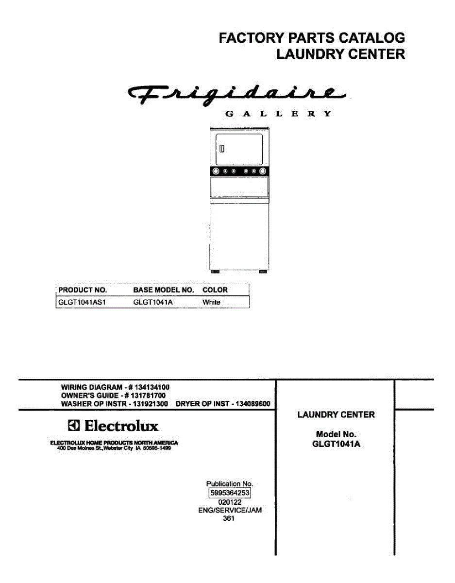 Parts for Frigidaire GLGT1041AS1: 01 - Cover Parts