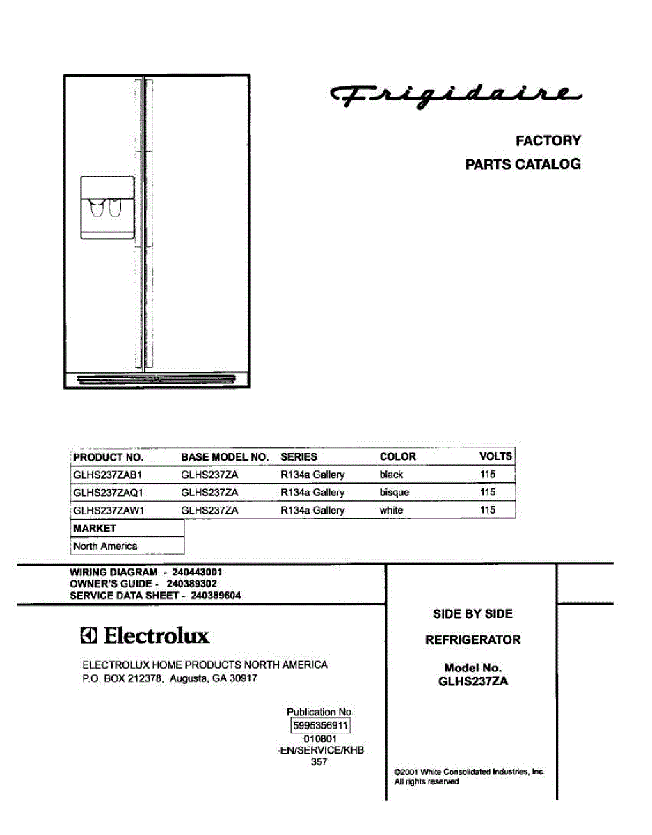 Parts for Frigidaire GLHS237ZAW1: 01 - Cover Parts