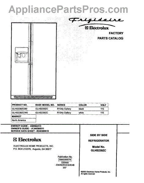 Parts for Frigidaire GLHS239ZCW0: 01 - Cover Parts