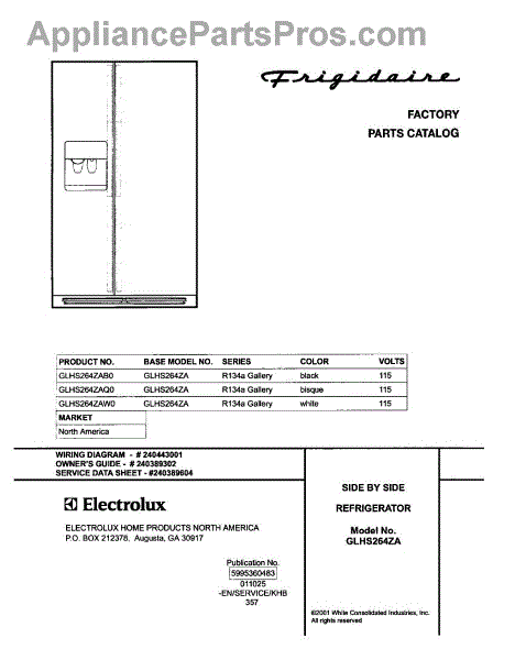Parts for Frigidaire GLHS264ZAW0: 01 - Cover Parts