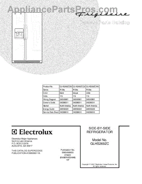 Parts for Frigidaire GLHS269ZCB0: 01 - Cover Parts