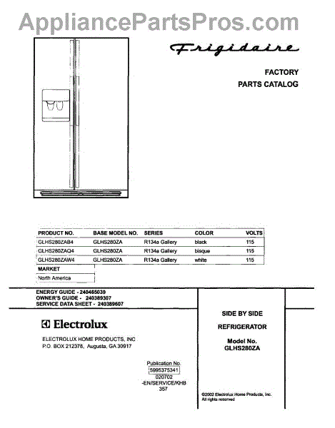 Parts for Frigidaire GLHS280ZAW4: 01 - Cover Parts