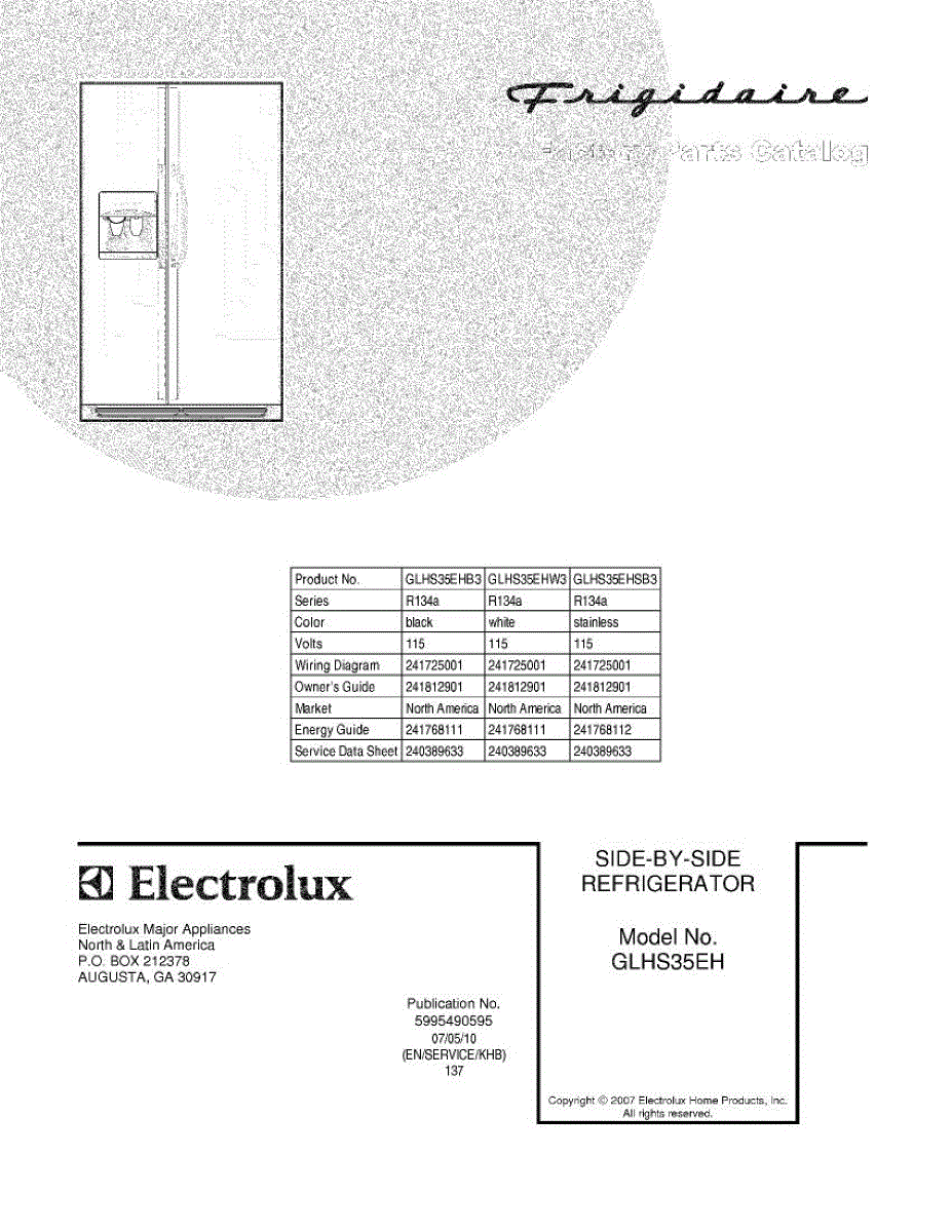 Parts for Frigidaire GLHS35EHSB3: 01 - Cover Parts