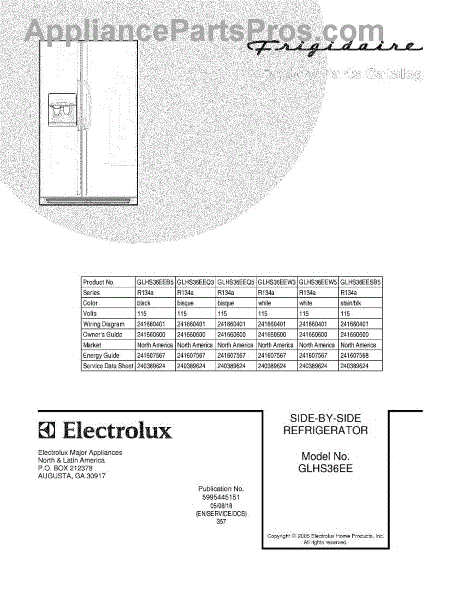 Parts for Frigidaire GLHS36EEB5: 01 - Cover Parts