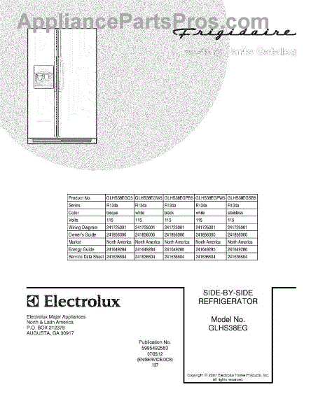 Parts for Frigidaire GLHS38EGSB5: 01 - Cover Parts