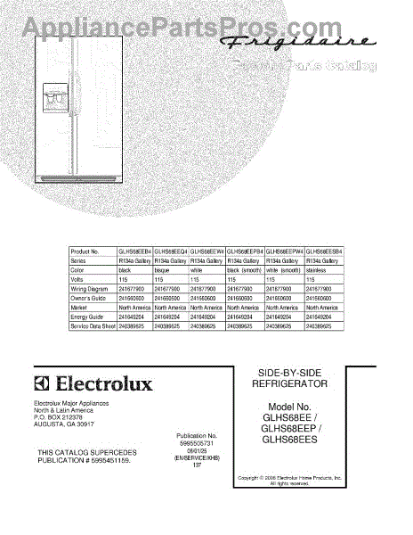 Parts for Frigidaire GLHS68EEPW4: 01 - Cover Parts