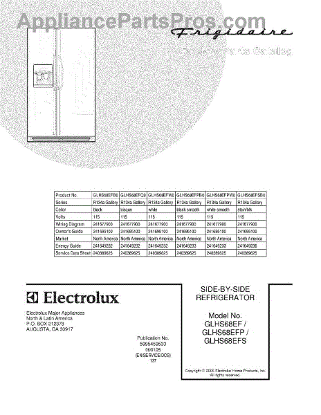 Parts for Frigidaire GLHS68EFSB0: 01 - Cover Parts