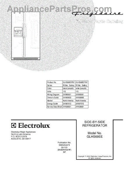 Parts for Frigidaire GLHS69EEPB7: 01 - Cover Parts