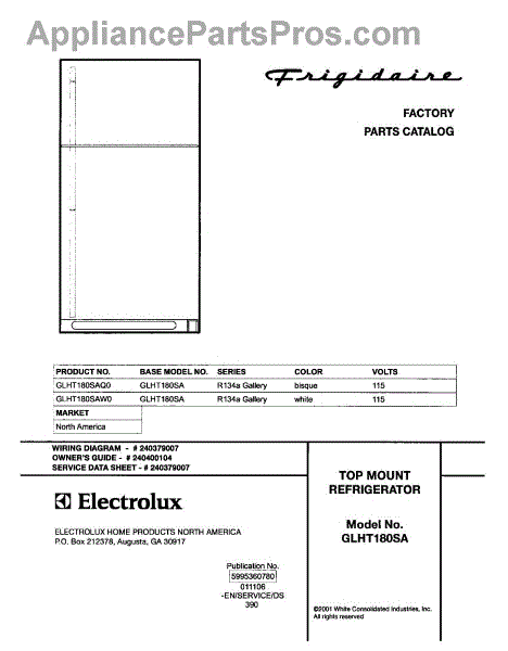 Parts for Frigidaire GLHT180SAW0: 01 - Cover Parts
