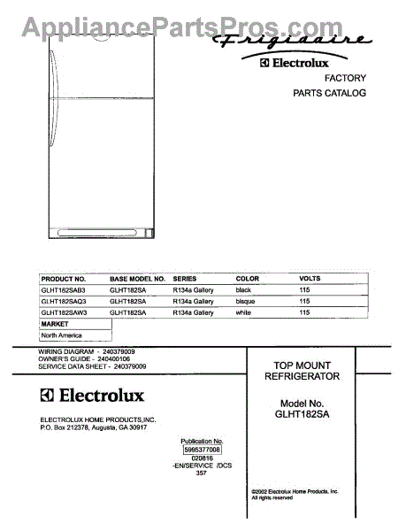 Parts for Frigidaire GLHT182SAQ3: 01 - Cover Parts