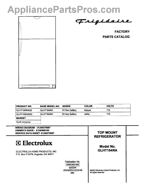 Parts for Frigidaire GLHT184RAW2: 01 - Cover Parts