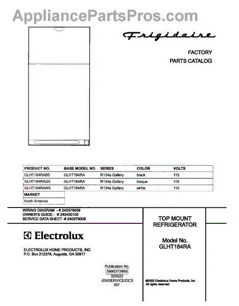 Parts for Frigidaire GLHT184RAW5: 01 - Cover Parts