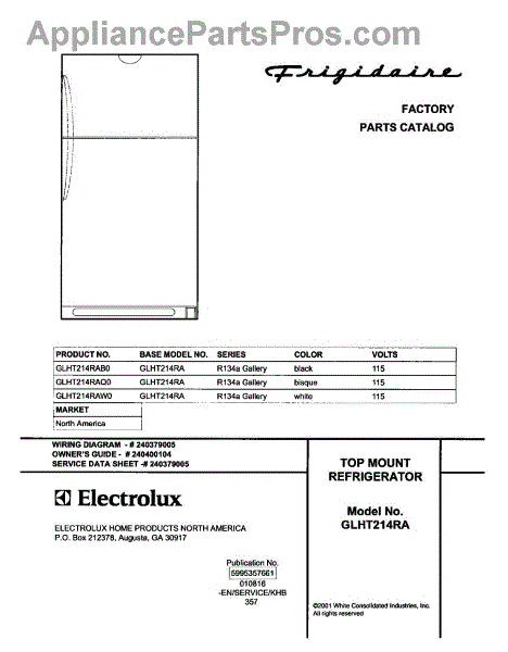 Parts for Frigidaire GLHT214RAB0: 01 - Cover Parts