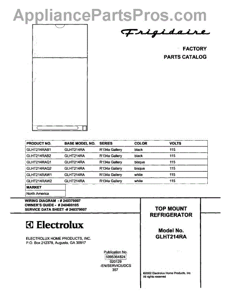 Parts for Frigidaire GLHT214RAB1: 01 - Cover Parts