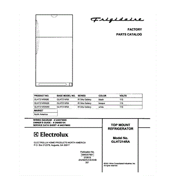 Parts for Frigidaire GLHT214RAQ0: 01 - Cover Parts