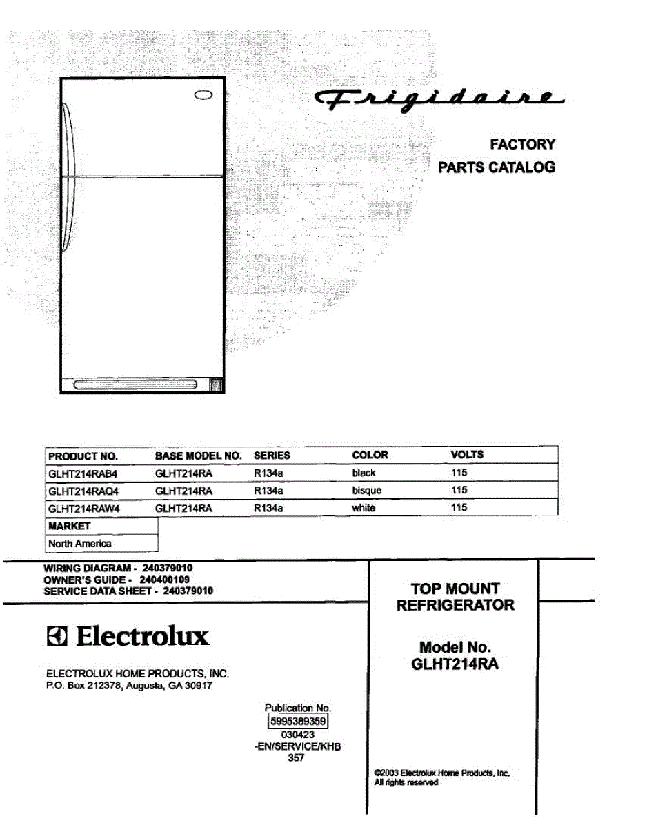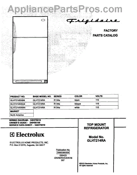 Parts for Frigidaire GLHT214RAQ4: 01 - Cover Parts