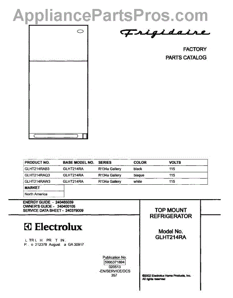 Parts for Frigidaire GLHT214RAW3: 01 - Cover Parts