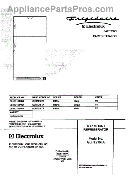 Parts for Frigidaire GLHT216TAQ4: 01 - Cover Parts