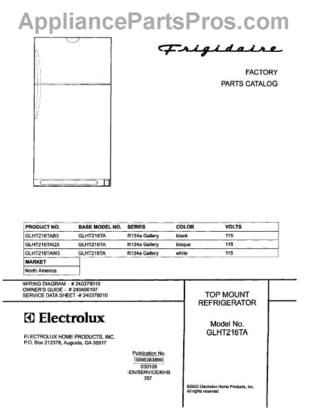 Parts for Frigidaire GLHT216TAW3: 01 - Cover Parts