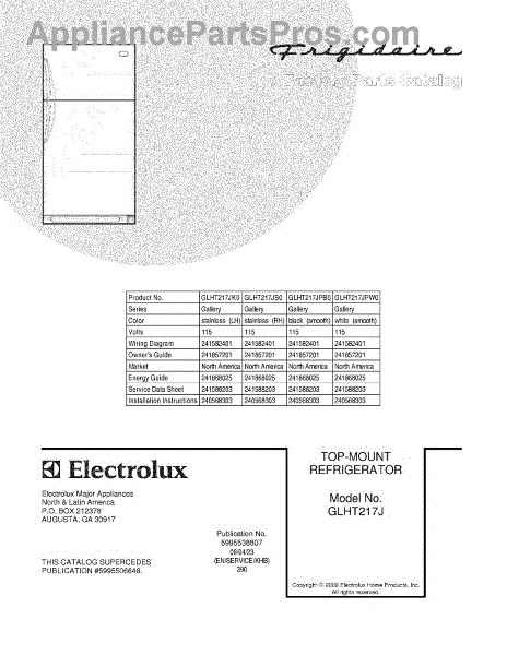 Parts for Frigidaire GLHT217JPW0: 01 - Cover Parts