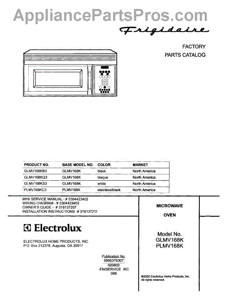 Parts for Frigidaire GLMV168KQ3: 01 - Cover Parts