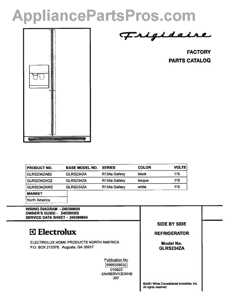 Parts for Frigidaire GLRS234ZAB2: 01 - Cover Parts